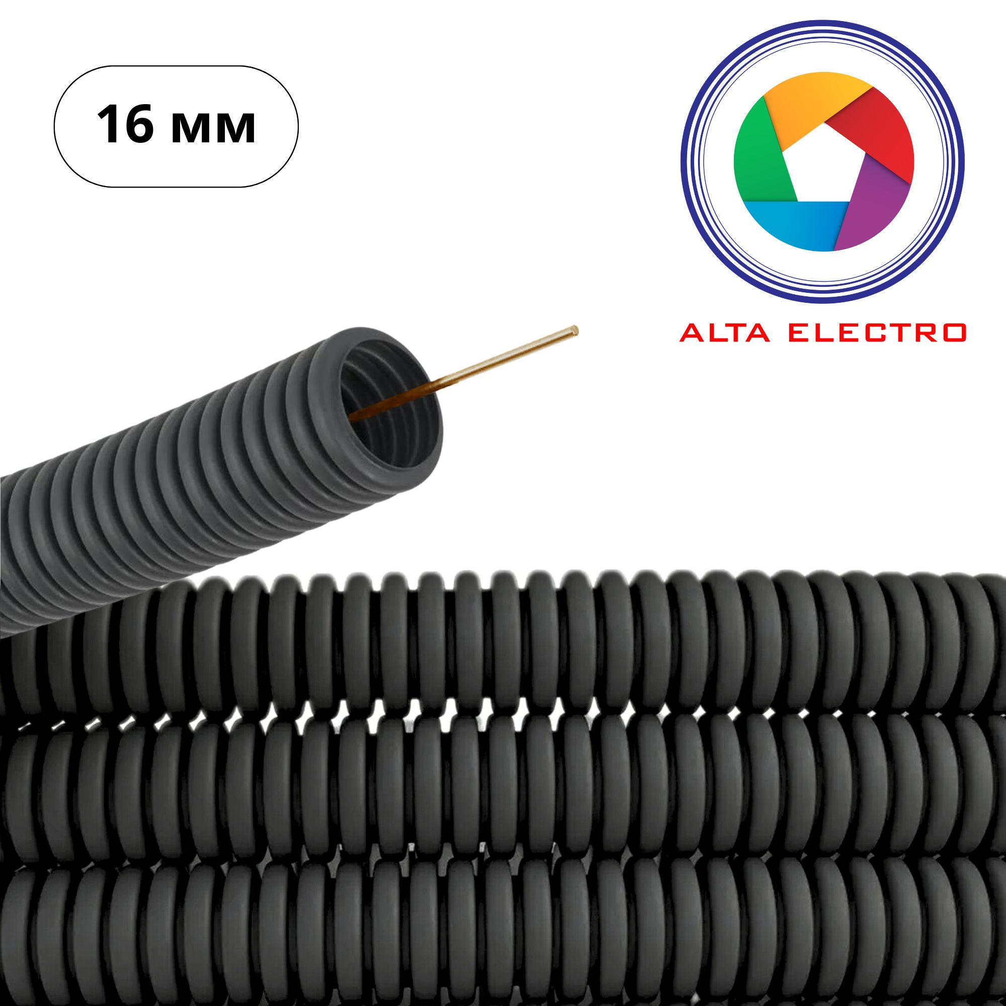 Corrugated standard pipes 320 N with stainless steel wire by TM ALTA ELECTRO are designed for laying and protecting electrical cables in residential and industrial applications. Made of high-quality PVC, they provide flexibility, reliability, and durability. The pipes are available in grey and black colors. Black pipes are additionally UV-resistant, making them suitable for both indoor and outdoor use. The built-in stainless steel wire simplifies the cable installation process.
